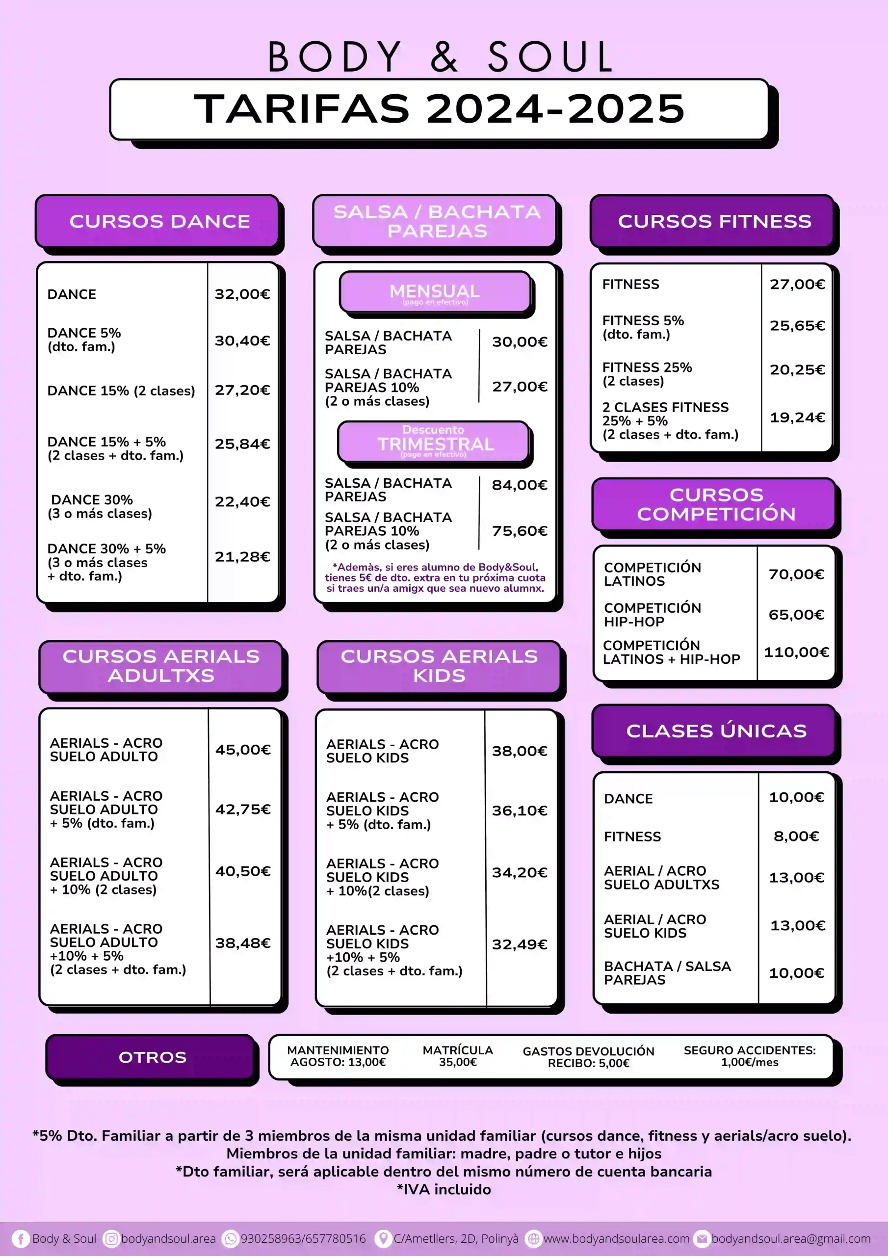 Descubre nuestras tarifas y elige la opción que mejor se adapta a ti para comenzar tu aventura en Body&Soul Area.
